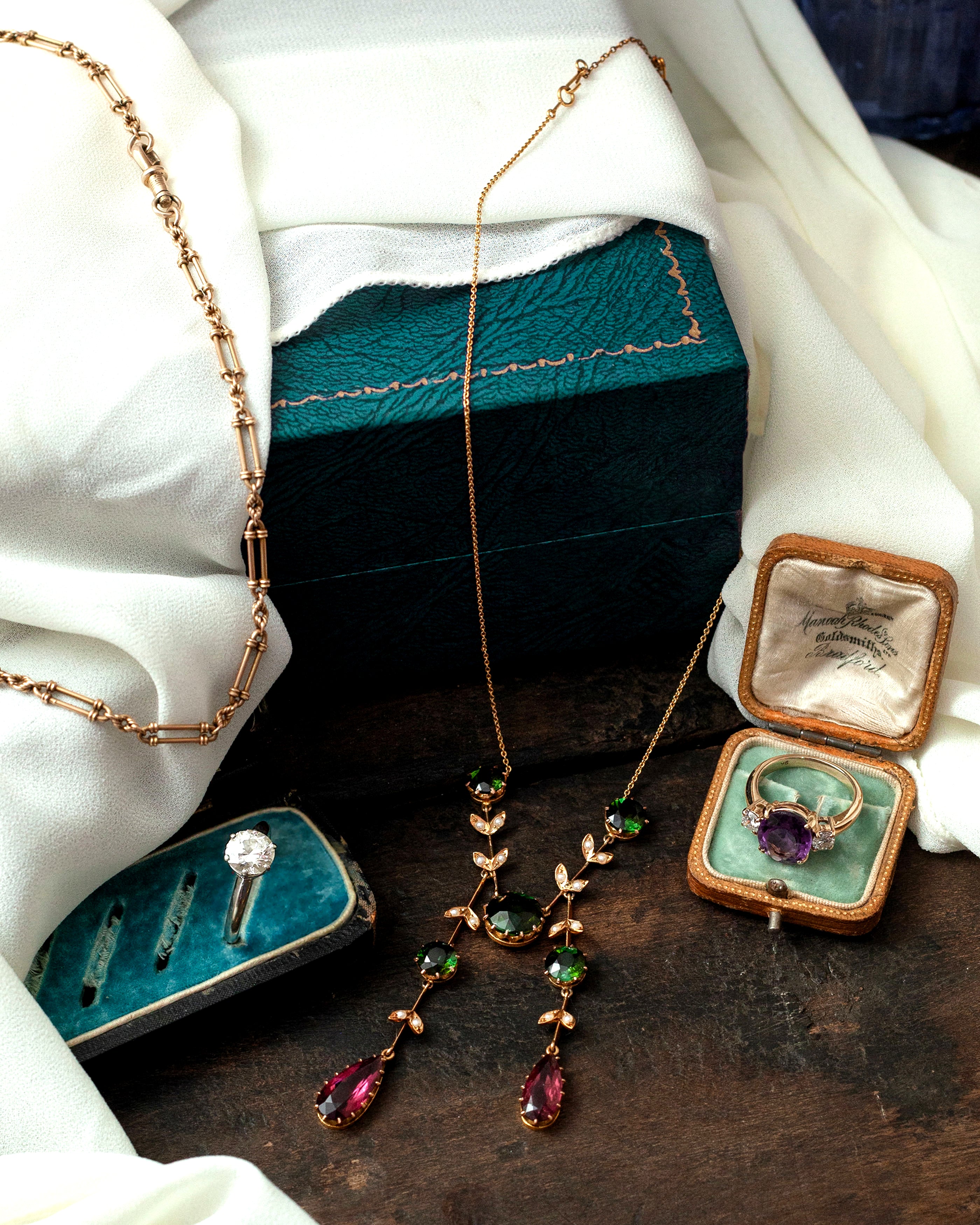 A small selection of Ruth's bespoke jewellery, uniquely crafted for each client.
