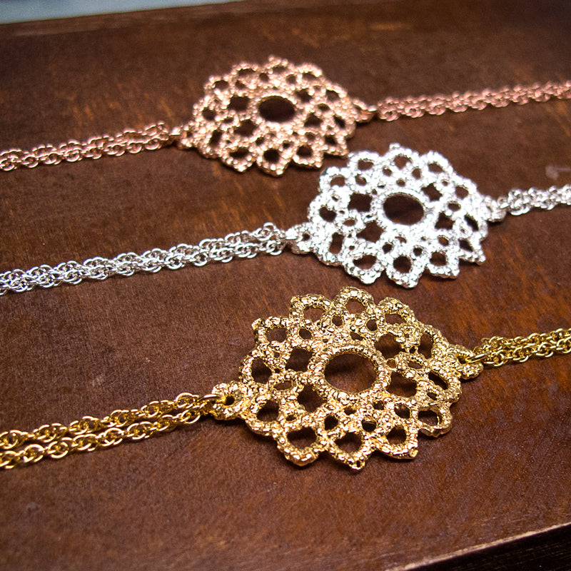 Regency Bracelet was hand crafted in lace to Ruth Mary's own design, then reproduced in solid sterling silver - the textured lace aesthetic captured perfectly.